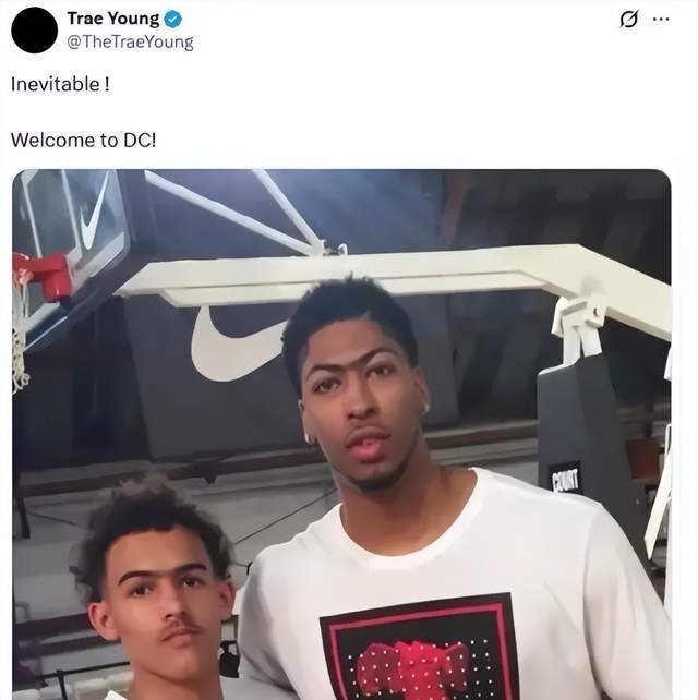 而在击败东部第一之后,球队新任后卫特雷杨也在社交媒体上表达了自己的激动,第一时间晒出自己和戴维斯的合照,配文写道: